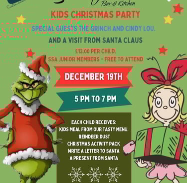 Calling All Children - The SSA 2025 Children's Christmas Party is here! Hosted by Sandy's Bar & Kitchen - book in for this Jingle-tastic Childrens Christmas Party! Friday 19th December 5pm Till 7pm