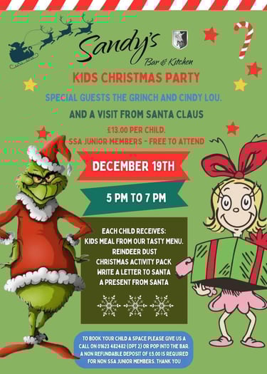 The SSA Junior Christmas Party will be held in Sandy's Bar & Kitchen on Friday 19th December, from 5pm - 7pm. Admission is free to our Junior members, the costs is £13 for non-members but you can join here for £5! Click here for further details.